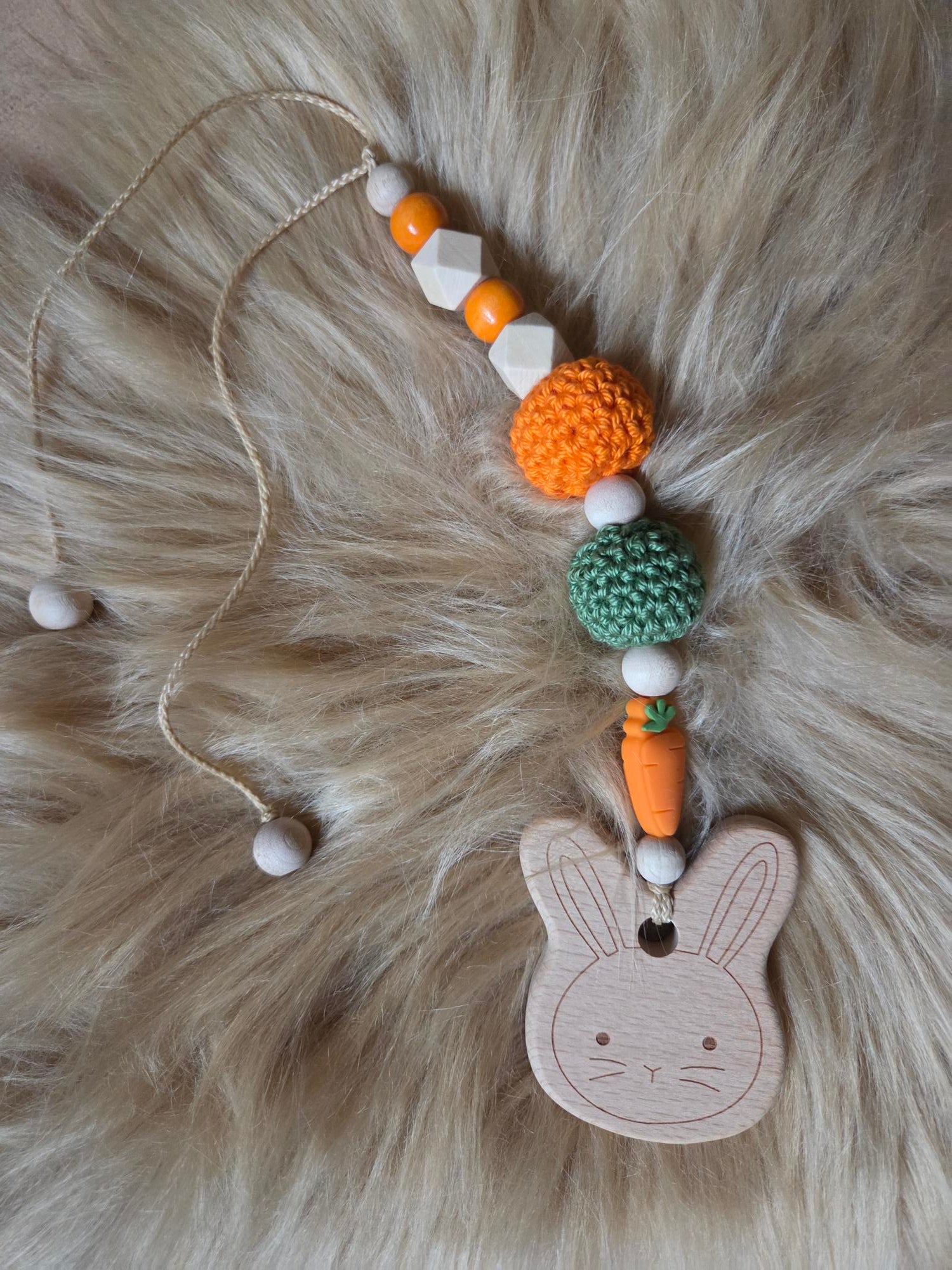 verschiedenen Holzperlen und einer Silikonkarotte!