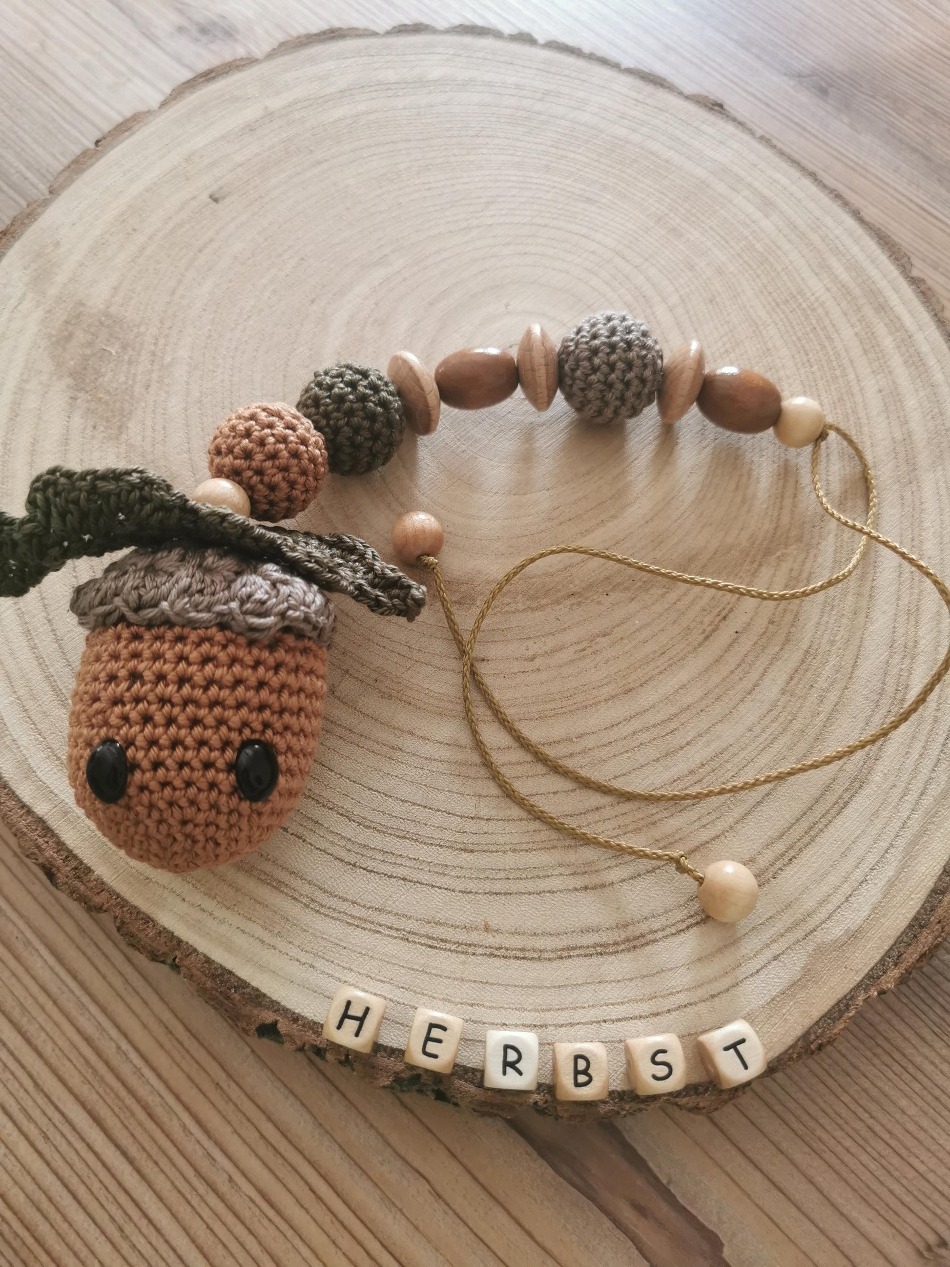 Dieser gehäkelte Maxi-Cosi- Anhänger bringt herbstliche Waldstimmung in deinen Alltag. Die weichen Naturfarben, kombiniert mit Holz- und Häkelperlen, machen ihn zu einem dezenten und gleichzeitig besonderen Begleiter für Babys unterwegs.