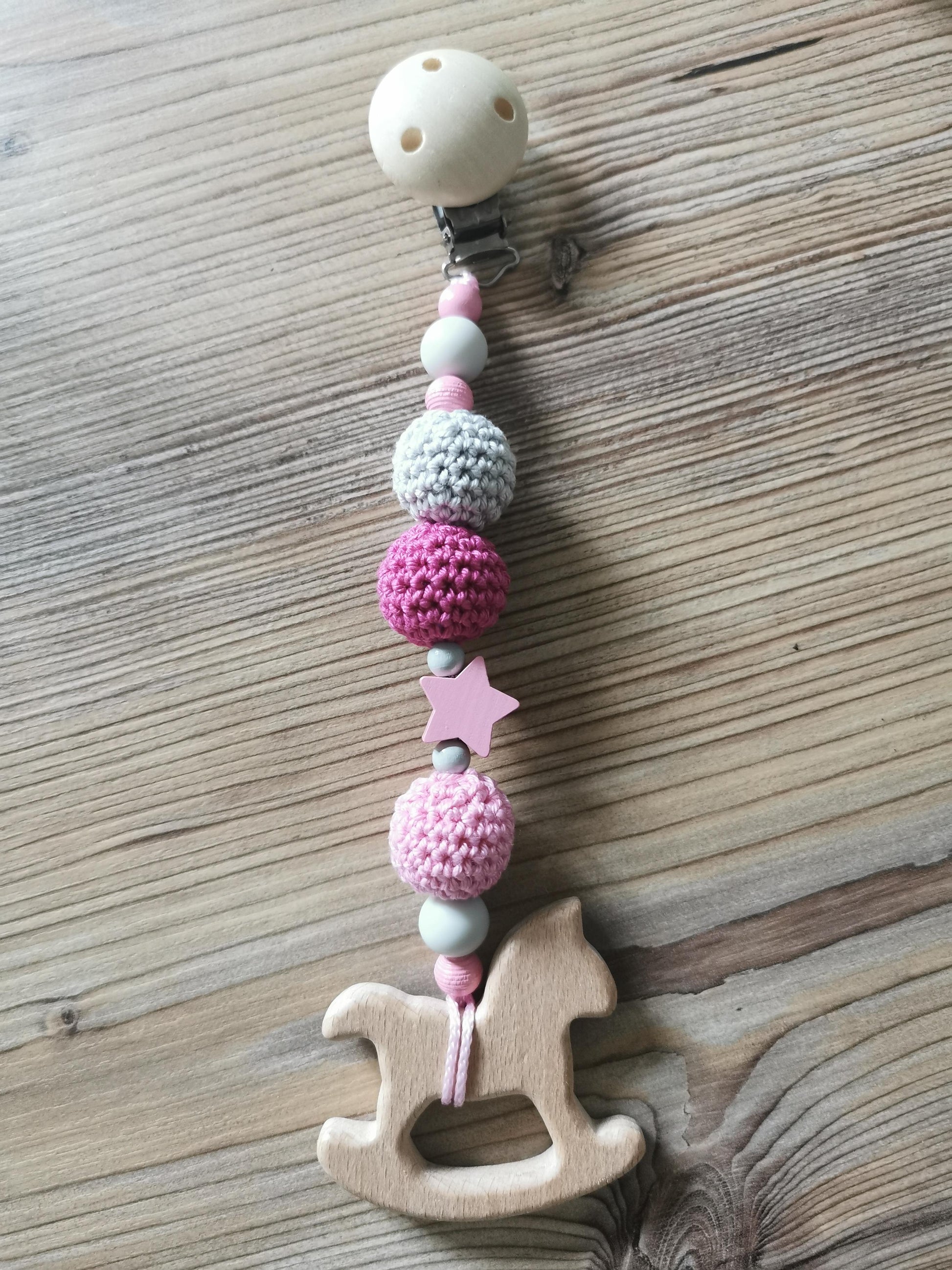 umhäkelten Holzperlen, Sternmotivperle, Holz- und Silikonperlen!