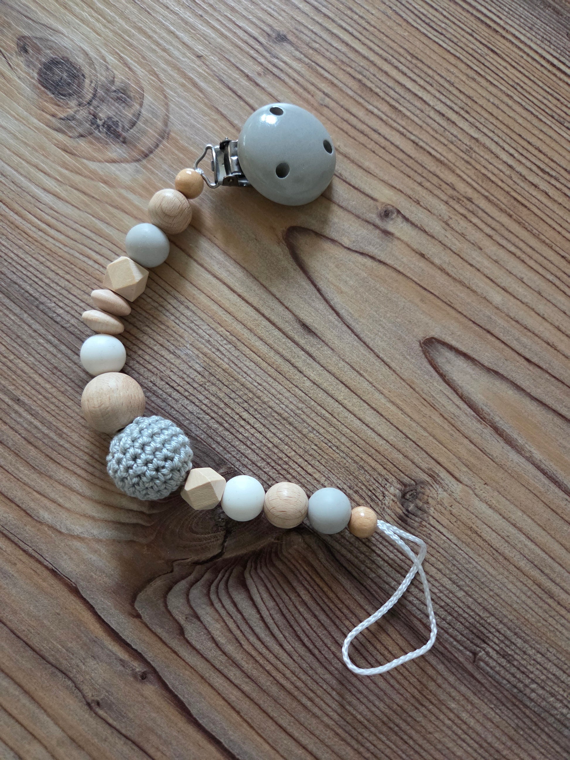 Tipp: Diese Schnullerkette passt wunderbar zu modernen, reduzierten Babylooks oder als Geschenk für Eltern, die Naturtöne lieben.